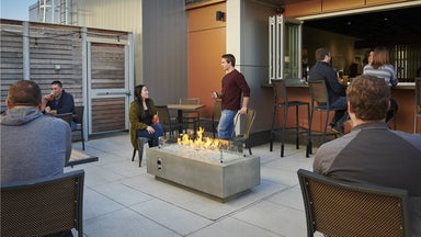 View full detailsCove 54 Inch Linear Fire Pit Table Key Features Contemporary fire pit table design with Natural Grey Supercast concrete base and pedestal 80,000 B...